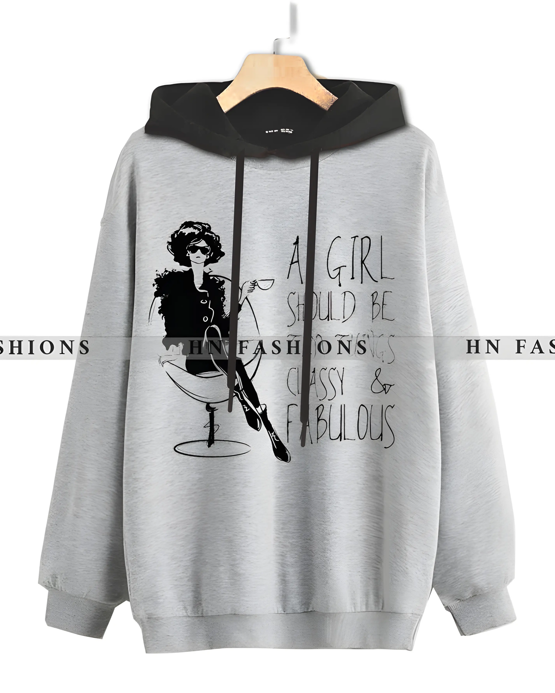 Grey Printed Hoodie For Women