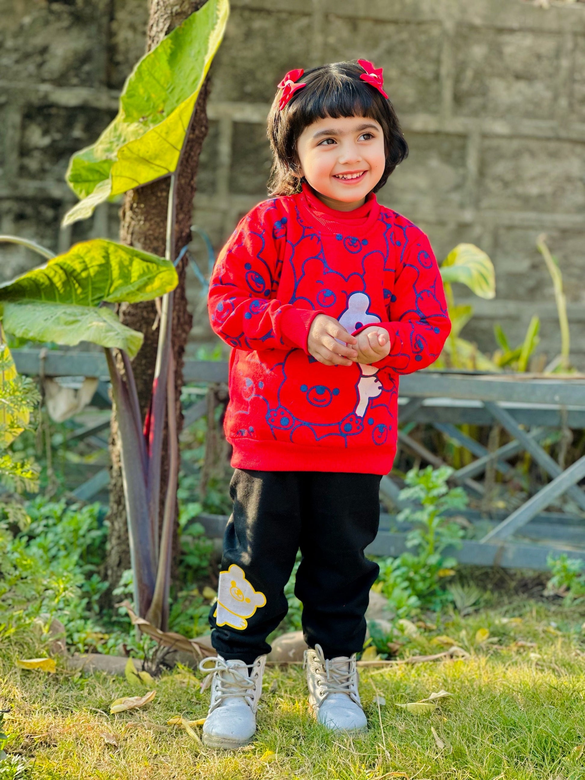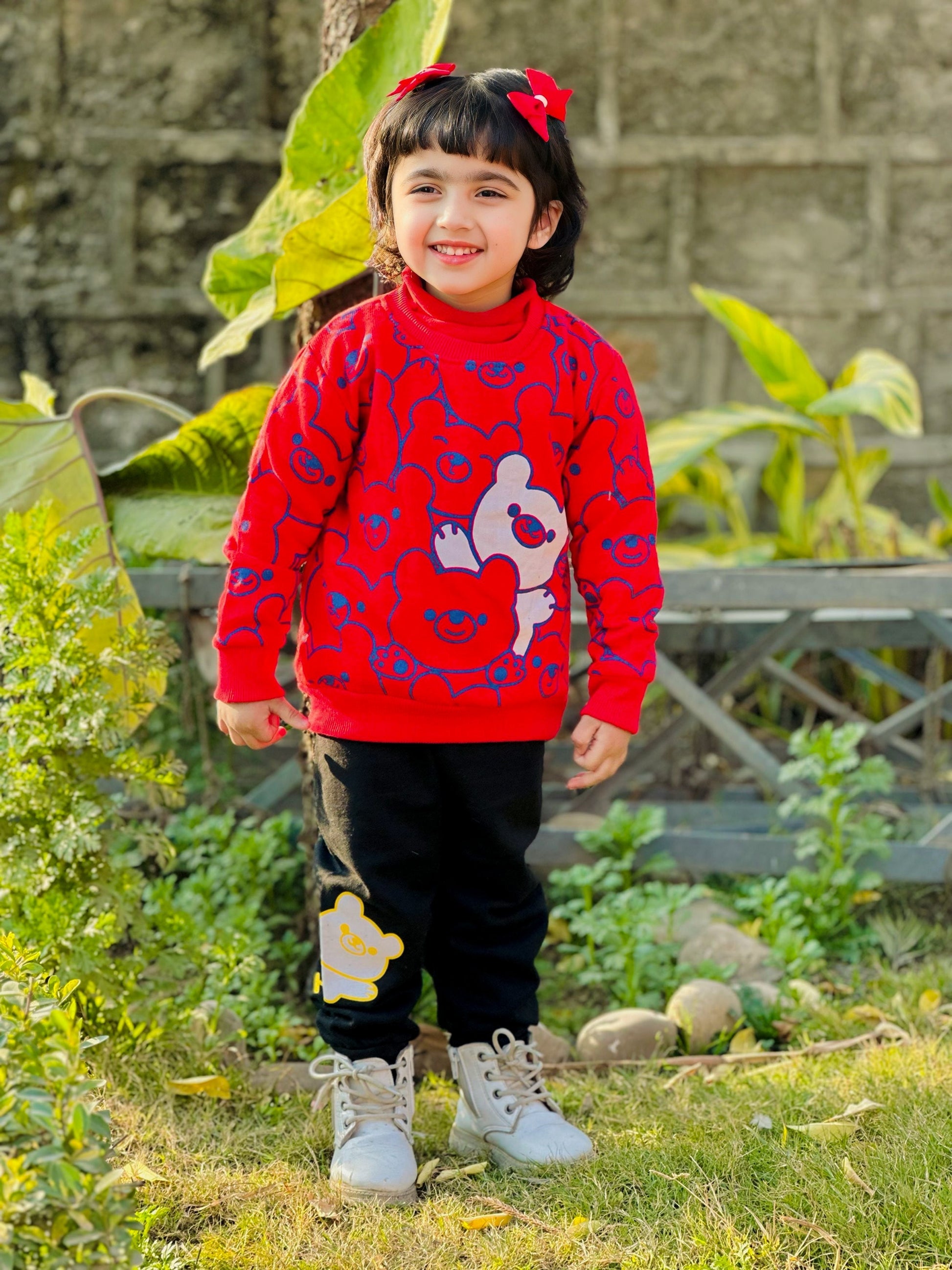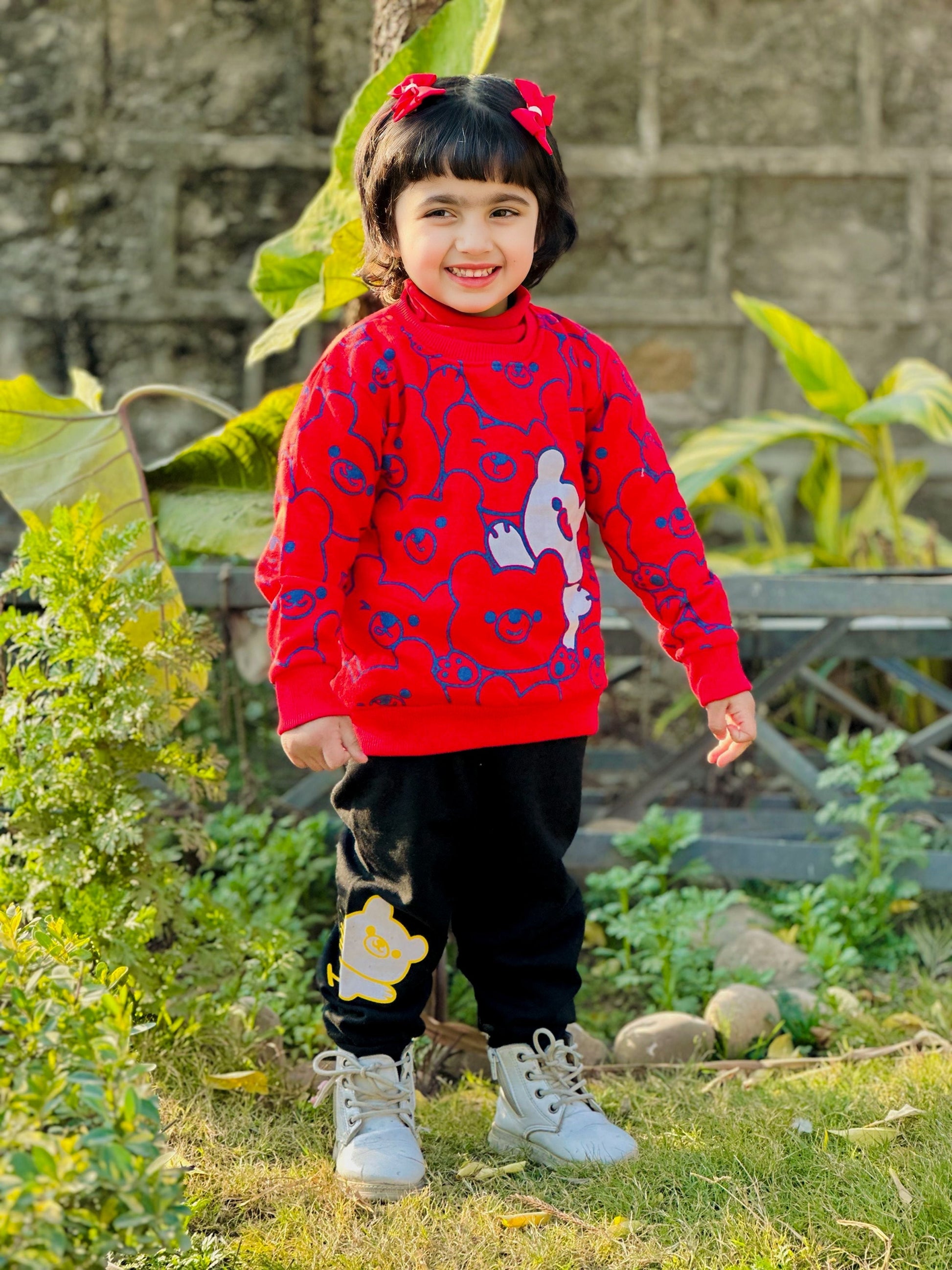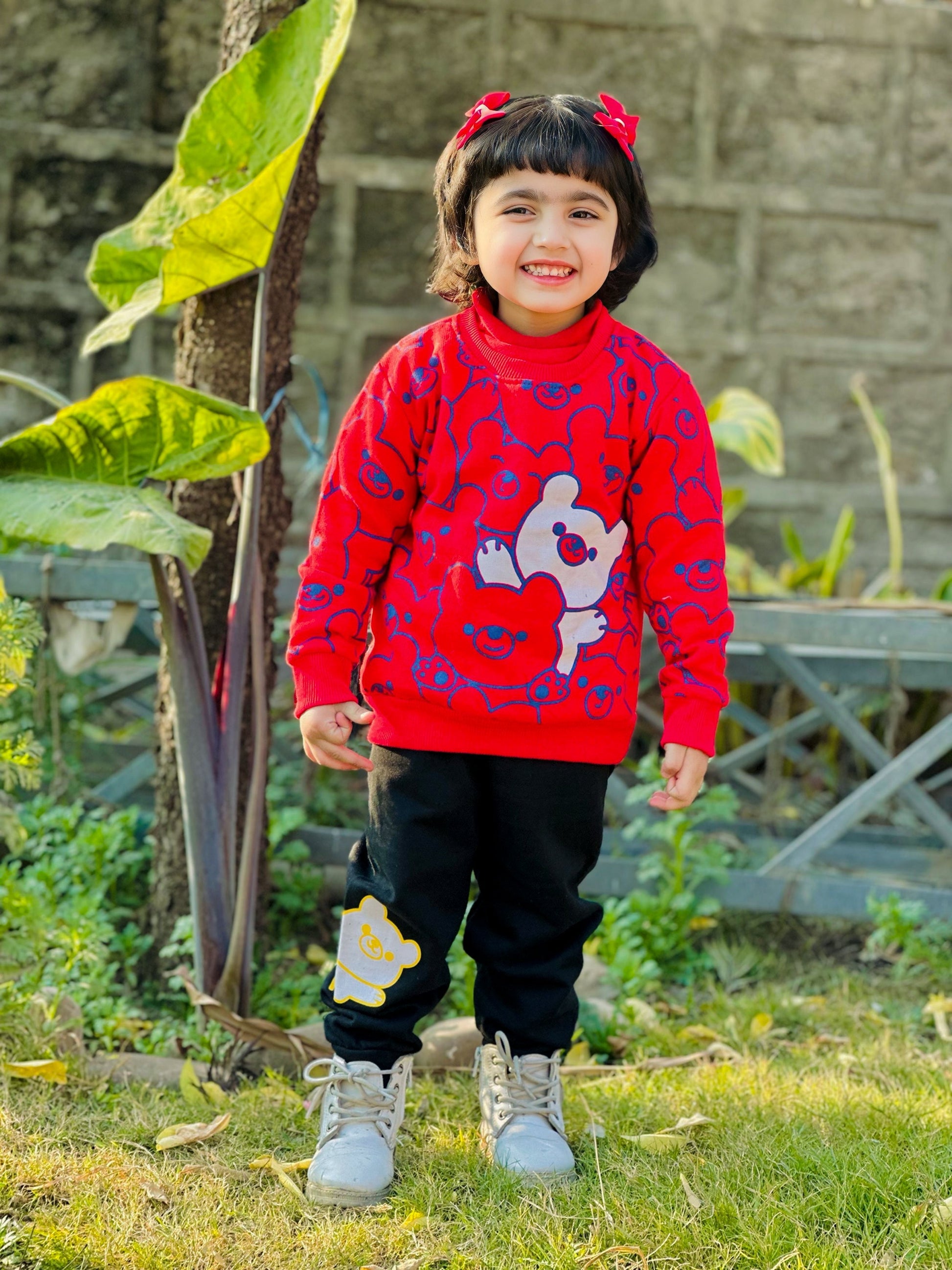 Red Bears Print Sweatshirt With Trouser For Kids (2 Piece)