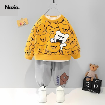 Yellow Bears Print Sweatshirt With Trouser For Kids (2 Piece)